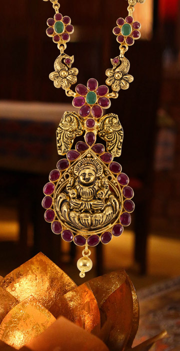 Temple jewelry is traditionally worn on auspicious occasions and festivals as it brings good luck.Rakshika’s exclusive temple jewelry des ...
